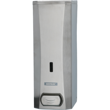 Låsbar tvål- och skumtvåldispenser från Katrin. Patron och pump bildar en sluten enhet, vilket motverkar läckage och tilltäppning i pumpen, vilket bidrar till ökad driftsäkerhet och god hygien.