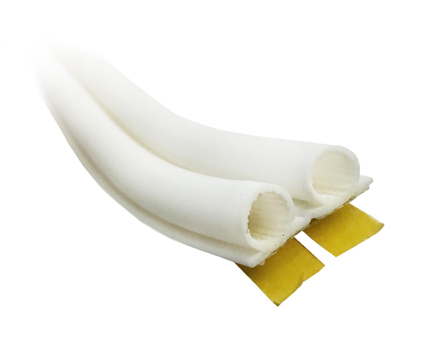 10 mm självhäftande tätningslist i omegaprofil av vit silikon. Passar till springor mellan 3-9 mm. Levereras dubbelsprutad. Delas vid montering. OBS! Tejpens vidhäftning är vanligtvis mycket bra på målade träytor, men kan variera på pulverlackade metallytor. Vid osäkerhet gör egna prov. Bästa silikonkvalitet för minst 10 års funktion. Listen är stadig att arbeta med, men ändå elastisk och följsam. Invändigt talkad för att inte klibba ihop.