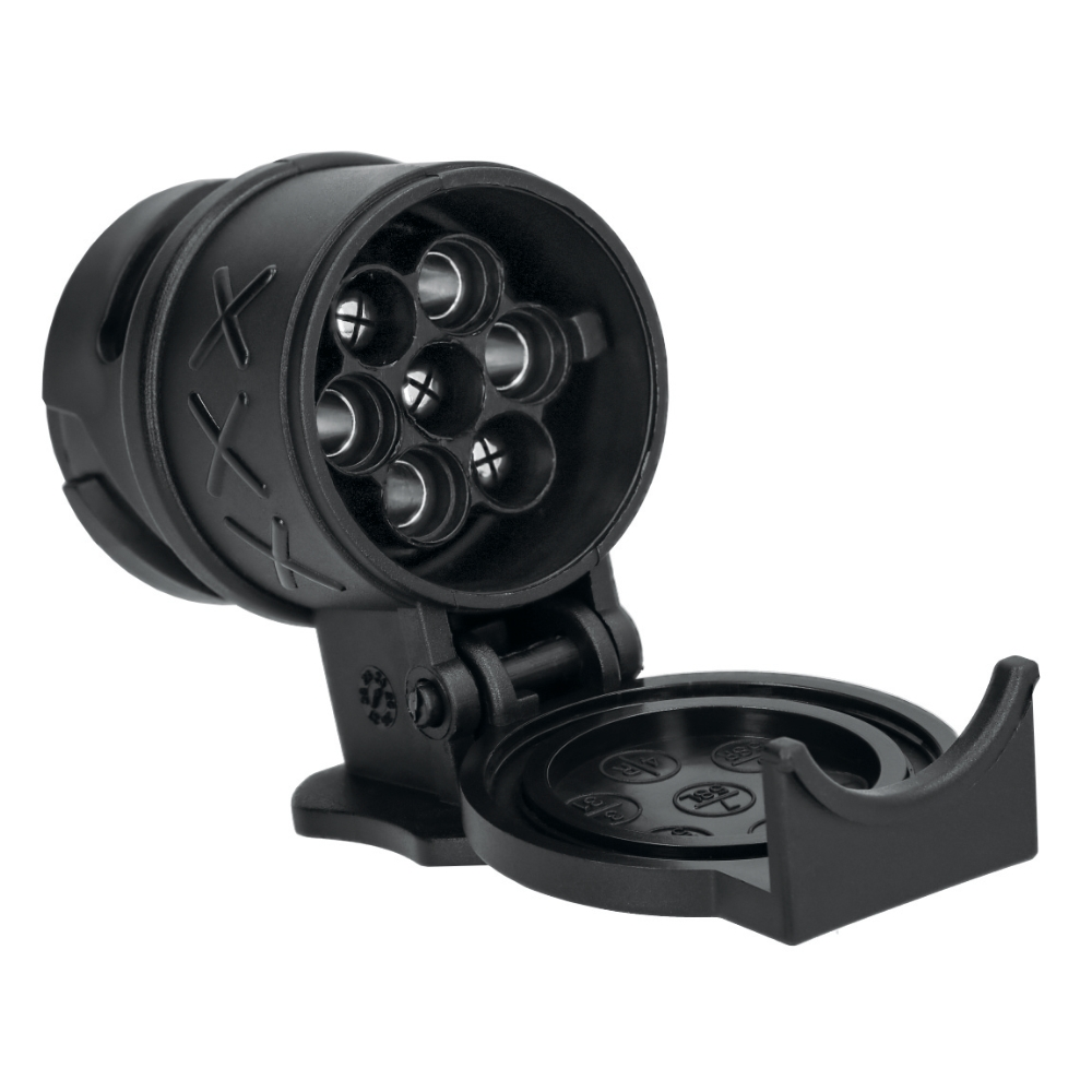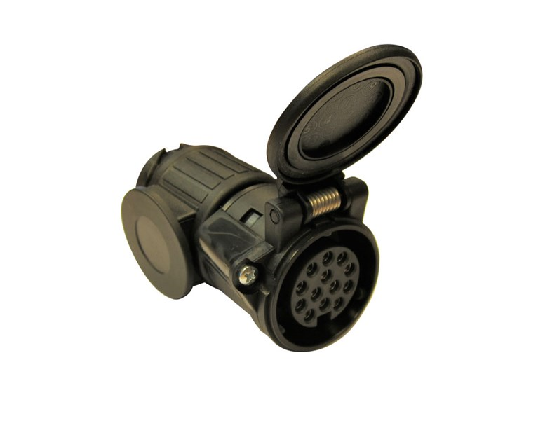 13-7 polig släpvagnsadapter, designad för att tåla alla väder. Lätt, hållbar plastkonstruktion med förzinkade kontaktytor för säker anslutning.