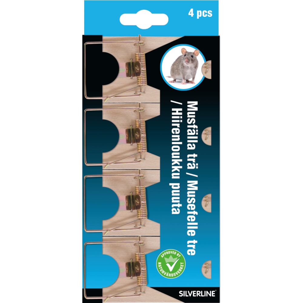 Traditionell slagfälla i kompakt trämaterial med stabil och kraftig fjäderkonstruktion.