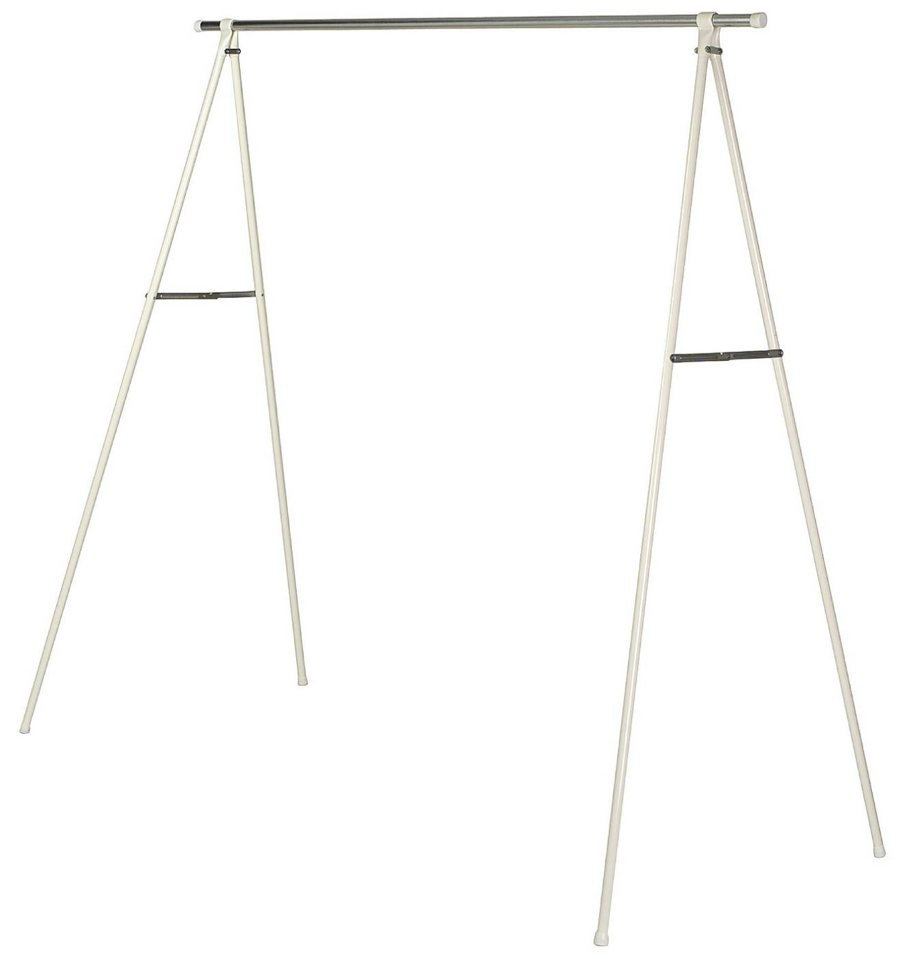 Fristående, hopfällbar torkställning av lackerade stålrör. 18 m extra torkyta. Med 22 fasta stänger.