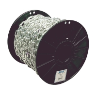 Förzinkad kätting. Spolarna är märkta på gavlarna med innehåll och kättingtyp. Spolarnas dimensioner: Spole 1=155 x 210 mm, spole 2=245 x 280 mm.