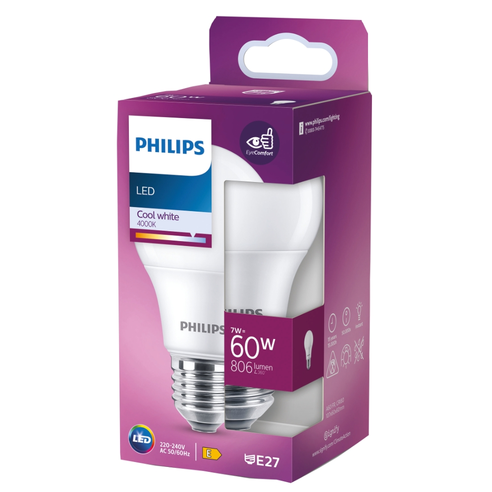 Philips LED-ljuskällor sprider ett kallvitt ljus, har en ovanligt lång livslängd och är energibesparande. Med sin rena och eleganta design är den här lampan det perfekta alternativet till dina matta standardlampor.