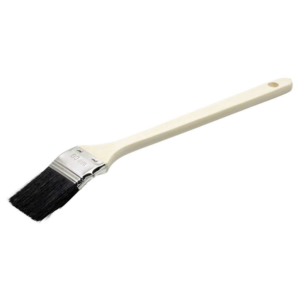 Produkterna har en enkel formgivning och en tydlig slit-och-släng-känsla. De är inte heller förlängningsbara. Men de funkar bra till det de är tänkta för - snabba målerijobb där finish och ergonomi inte spelar någon roll.Lång vinkelpensel med naturborst. Ej förlängningsbar.
