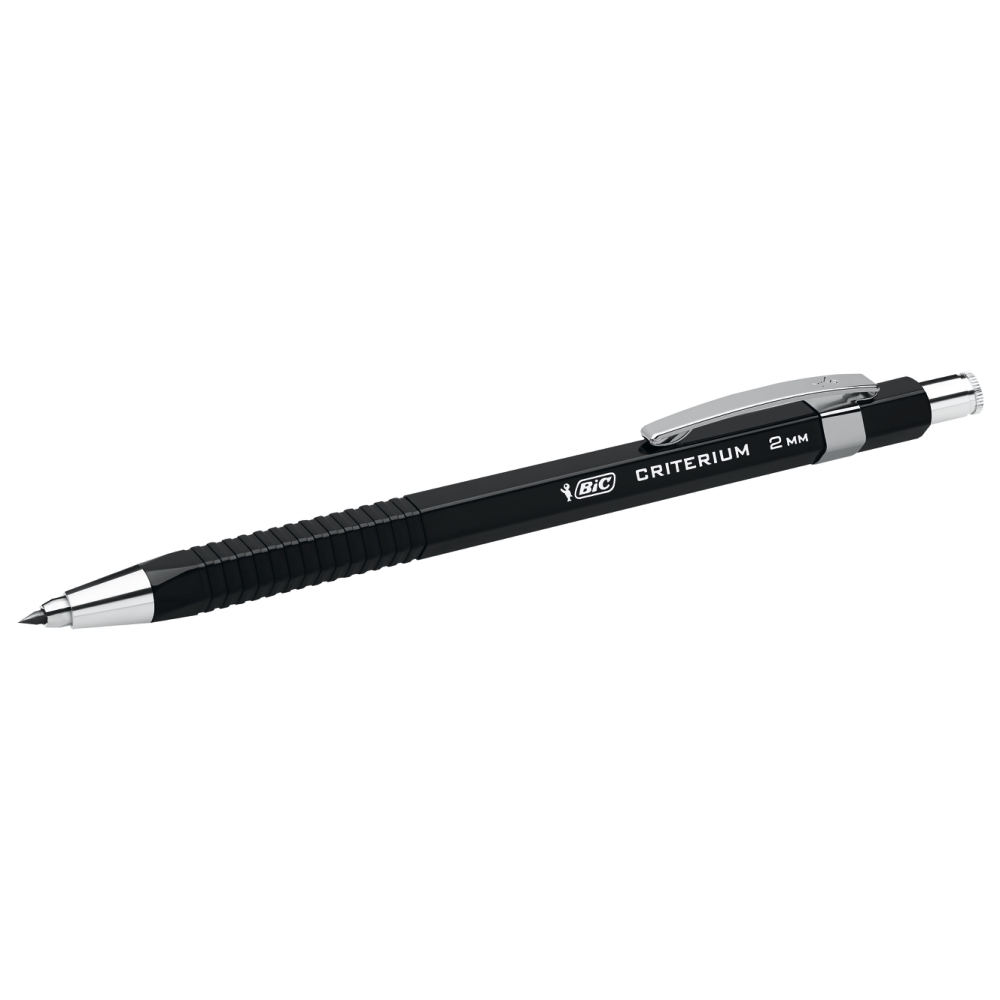 Påfyllningsbar mekanisk stiftpenna med 2 mm HB-stift. Idealisk för tekniska ritningar. Extra hårda stift. Metallclips, vässare och radergummi.