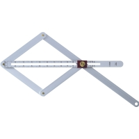 Tillverkad av metalleloxerad aluminium. För mätning av inner- och yttervinklar. Med dubbla skalor för direkt avläsning. Med centrumvinkel samt distans- och ritsmall.