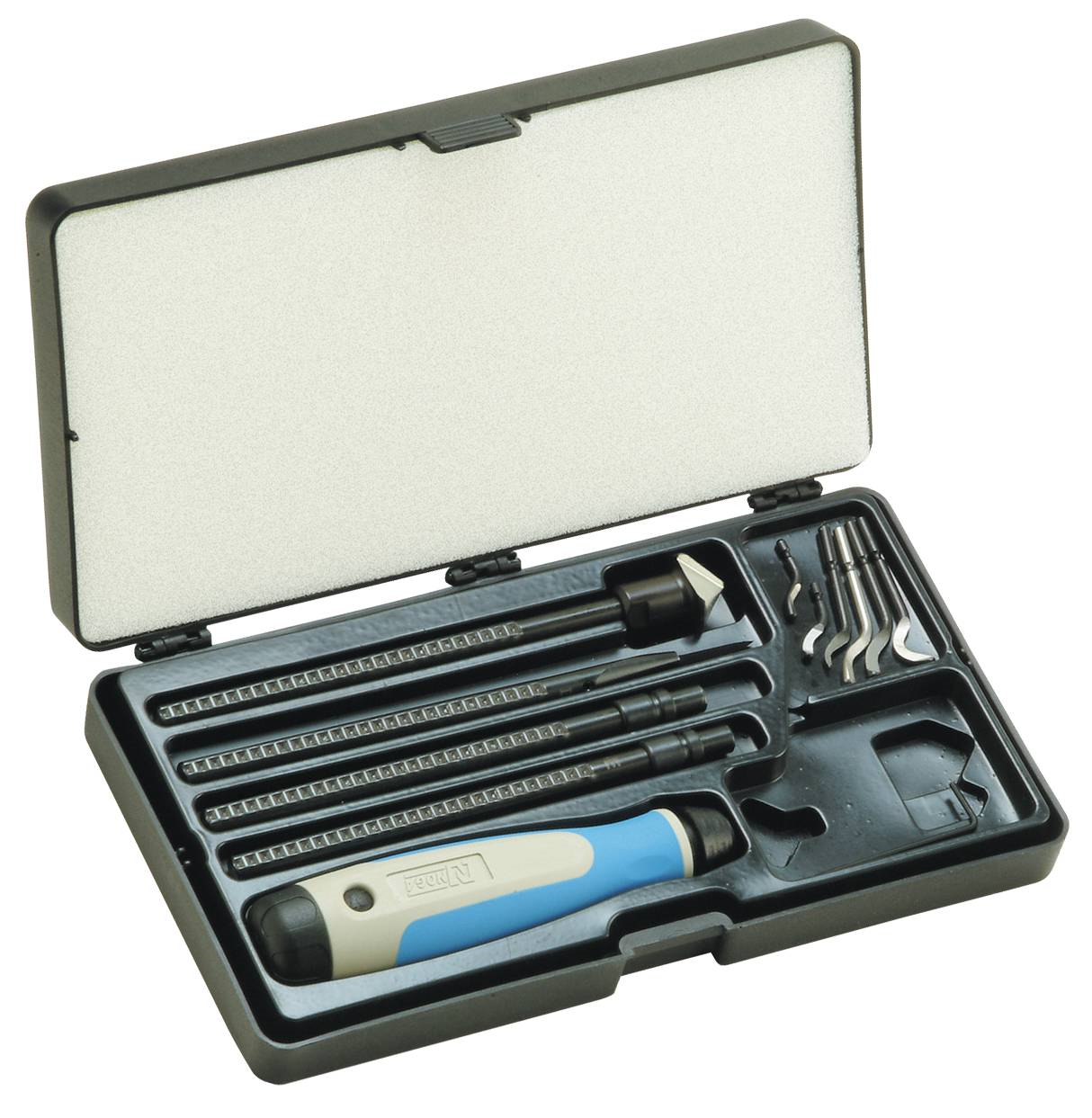 BRONZE UNKIT (13840-0106). Satsen innehåller handtag, 2 teleskophållare för små och stora knivar, teleskophållare inkl. försänkare 20 mm, teleskophållare inkl. miniskavstål, 2 små knivar N1 och N2 samt 4 stora knivar S10, S20, S30 och S150.
