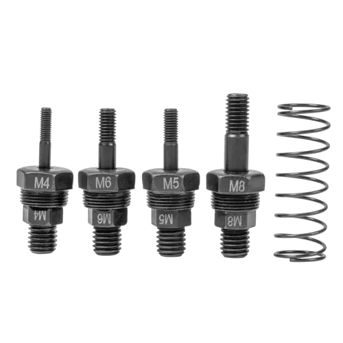 Komplett kit för att underhålla och reparera Rapid RP160 Mutternitadaptern. Kittet innehåller en fjäder, dorn och munstycke för storlek M4, M5, M6, M8.