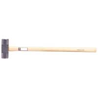 Slägga med svart lackerat smide, härdade sexkantiga slagytor på båda sidor. Träskaft av hickory.