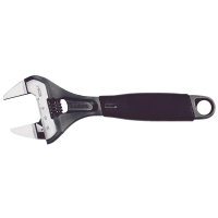 Skiftnyckel med ergonomisk utformning enligt en vetenskaplig ERGO™-process. Av svartoxiderat, precisionshärdat och rostskyddsbehandlat högkvalitativt stål. Bekvämt handtag av termoplastisk elastomer. 40% bredare öppning jämfört med standardmodell i samma storlek. 45% tunnare käftar jämfört med standardmodell i samma storlek kombineras med en praktisk längd av handtaget och mycket låg vikt. Extra tunna käftar med mycket bra åtkomlighet i trånga utrymmen. Vänstergående skala i mm.