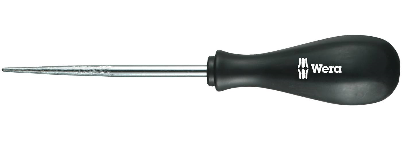 Genomgående klinga med slagkappa. Klinga av kromvanadinstål - handtag av plast.