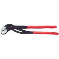 Inställning med knapptryck direkt på arbetsstycket. Finjustering för optimal anpassning till olika storlekar på arbetsstycken och handvänligt greppläge. Självlåsande på rör och muttrar: ingen glidning på arbetsstycket, kraftsparande arbete. Gripytor med specialhärdade tänder, tändernas hårdhet ca 61 HRC: permanent säkert grepp genom hög slitstyrka. Genomgående led: hög stabilitet genom dubbel styrning. Ledbulten snäpper in säkert: ingen oönskad omställning. Klämskydd. Krom-vanadinelektrostål, smitt, oljehärdat. Gråa tänger försedda med korrosionsskydd. Polerat huvud.