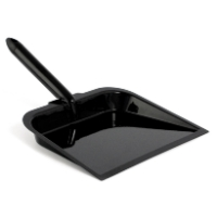 Sopskyffel med kort, runt skaft. Lackad plåt.