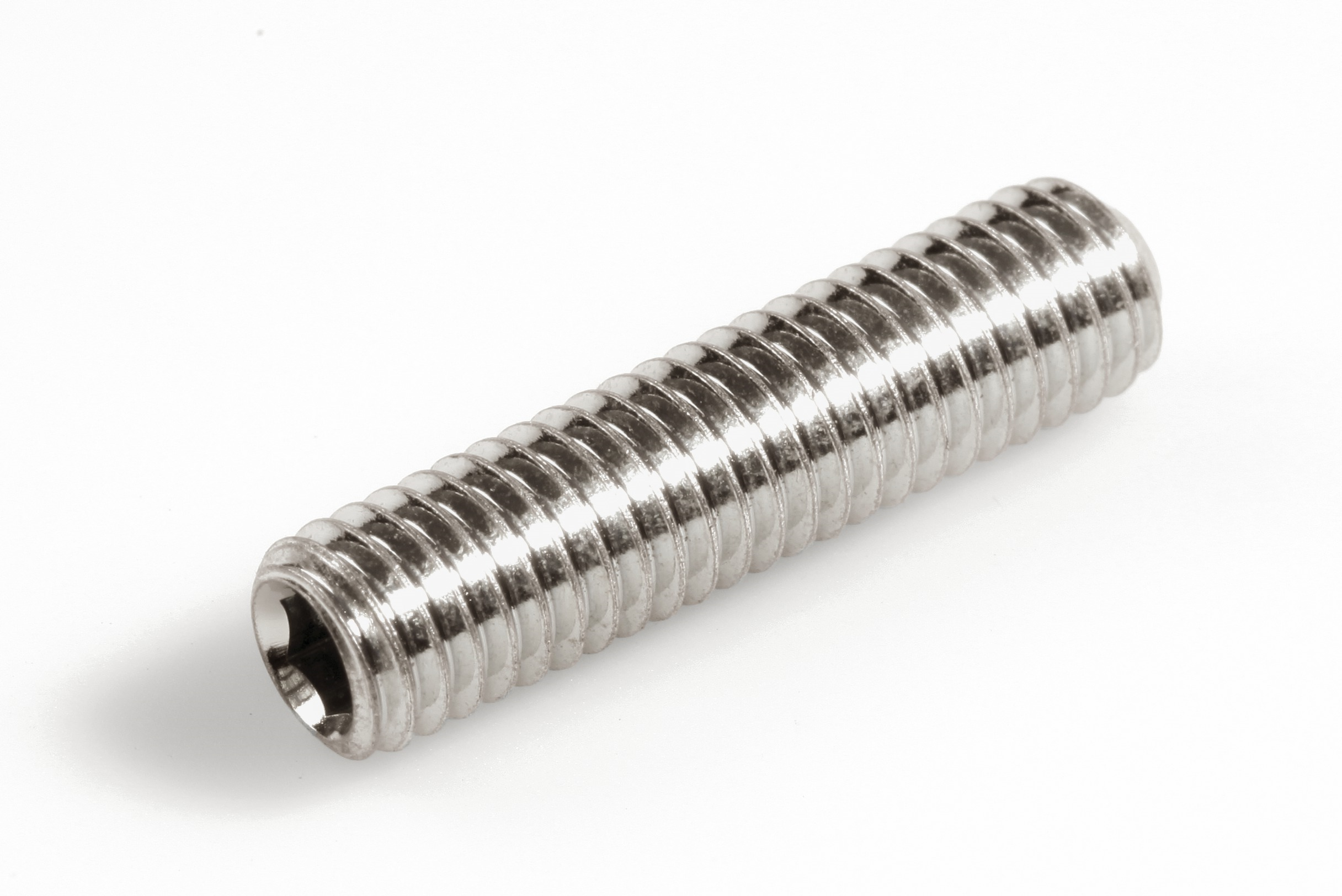 Skruv utan skalle. Avsedd för låsning av axlar och dylikt då ingen del av skruven får sticka upp.