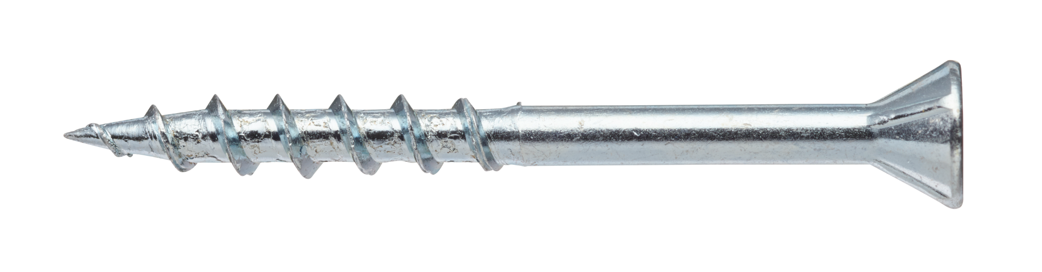 Vass spets och gängor anpassade för förankring i trä. Gängorna griper omedelbart och drar in skruven i spånskivan, samtidigt som rillorna under huvudet försänker skruven. Dimensionering. Ca 20 st/m², skruvavstånd 20 cm. Monteringsanvisning. Skruvdragare med djupanslag, varvtal 2.000–3.000 r/m rekommenderas.