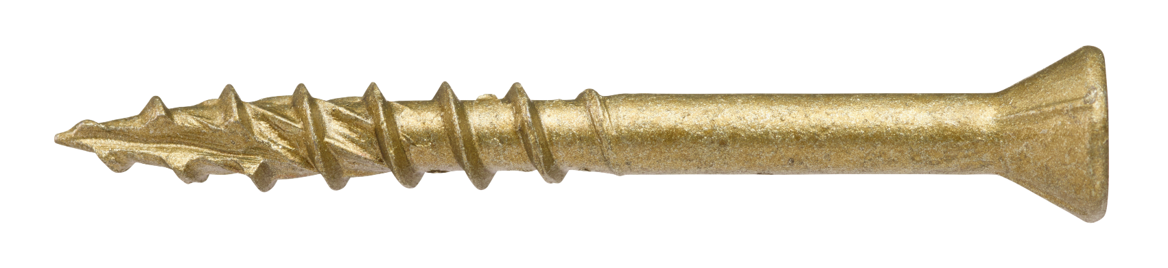 Vass spets och gängor anpassade för förankring i trä. Gängorna griper omedelbart och drar in skruven i trallen, samtidigt som rillorna under huvudet försänker skruven. Lämplig vid montage av trall, altaner, staket m. m. Skruvens unika idragningsegenskaper har uppnåtts genom att förse skruven med en skärande borrspets, samt med snedställda och längsgående skär mellan gängorna. Detta ger följande fördelar: Minskad risk för sprickor i trä. Lägre moment vid idragning. Minskad iskruvningstid. Dimensionering. Ca 30 st/m². Monteringsanvisning. Skruvdragare med djupanslag rekommenderas,