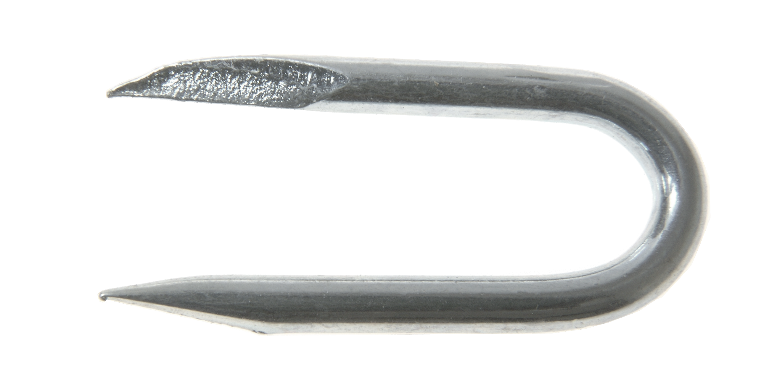 Krampan används vid uppsättning av stängsel och tråd i trästolpar m.m. Just den härdade varianten används med fördel vid infästning i ekstolpar.