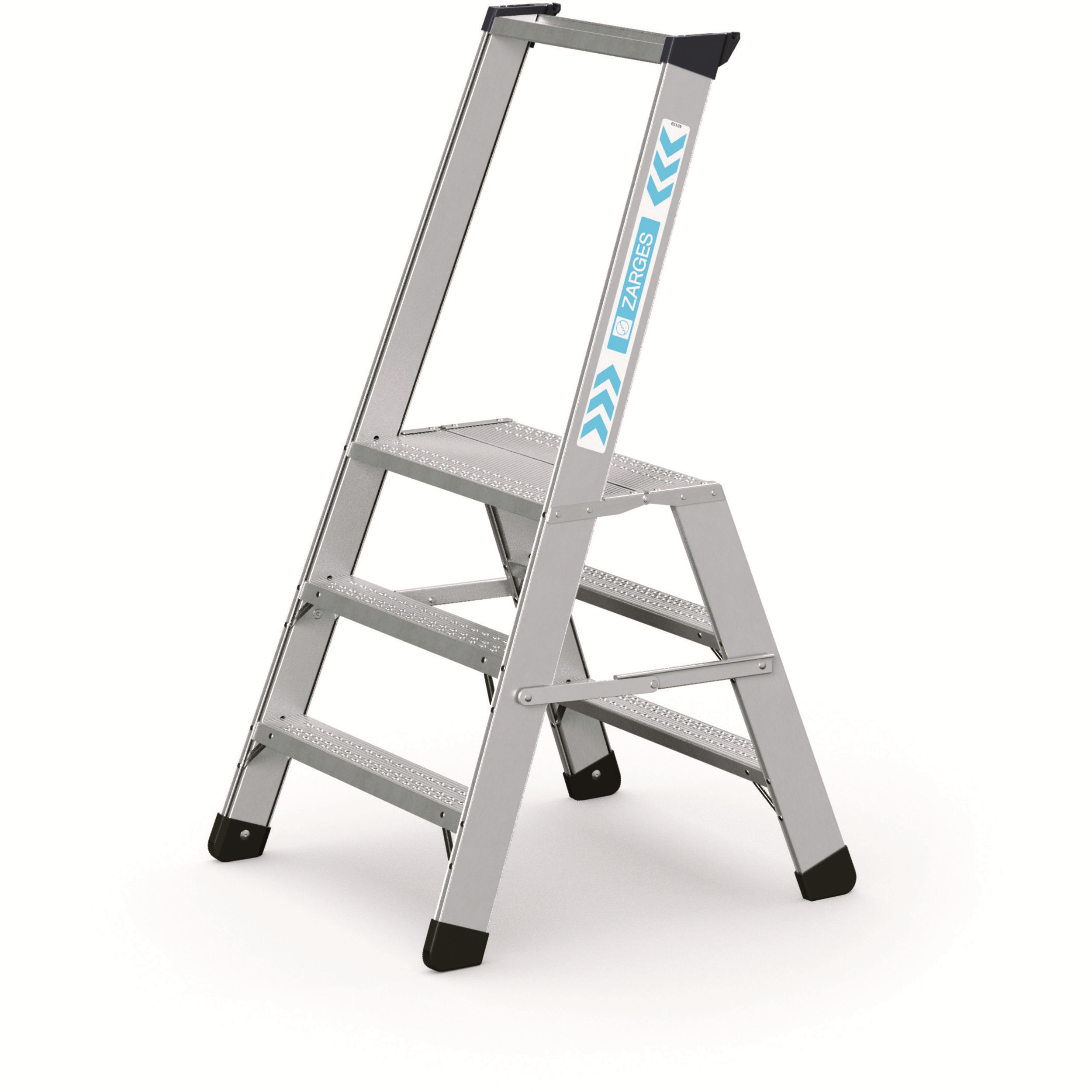 Lätt och bekväm säkerhetsbock för snabb och flexibel användning med stor 600 x 300 mm arbetsplattform och skyddsräcke. Uppstigning med 85 mm djupa steg med kragade hål för maximalt fäste, även vid snö och vatten. Vartannat hål är okragat för att ge god dränering. Integrerad gångjärnsförbindning. Patenterad 7-punkts förbindelse mellan trappsteg och stegsida. Praktisk verktygshylla med gott om plats för handverktyg och småsaker. Godkänd enligt Bra Arbetsmiljöval. I enlighet med SS-EN 131 professionell.