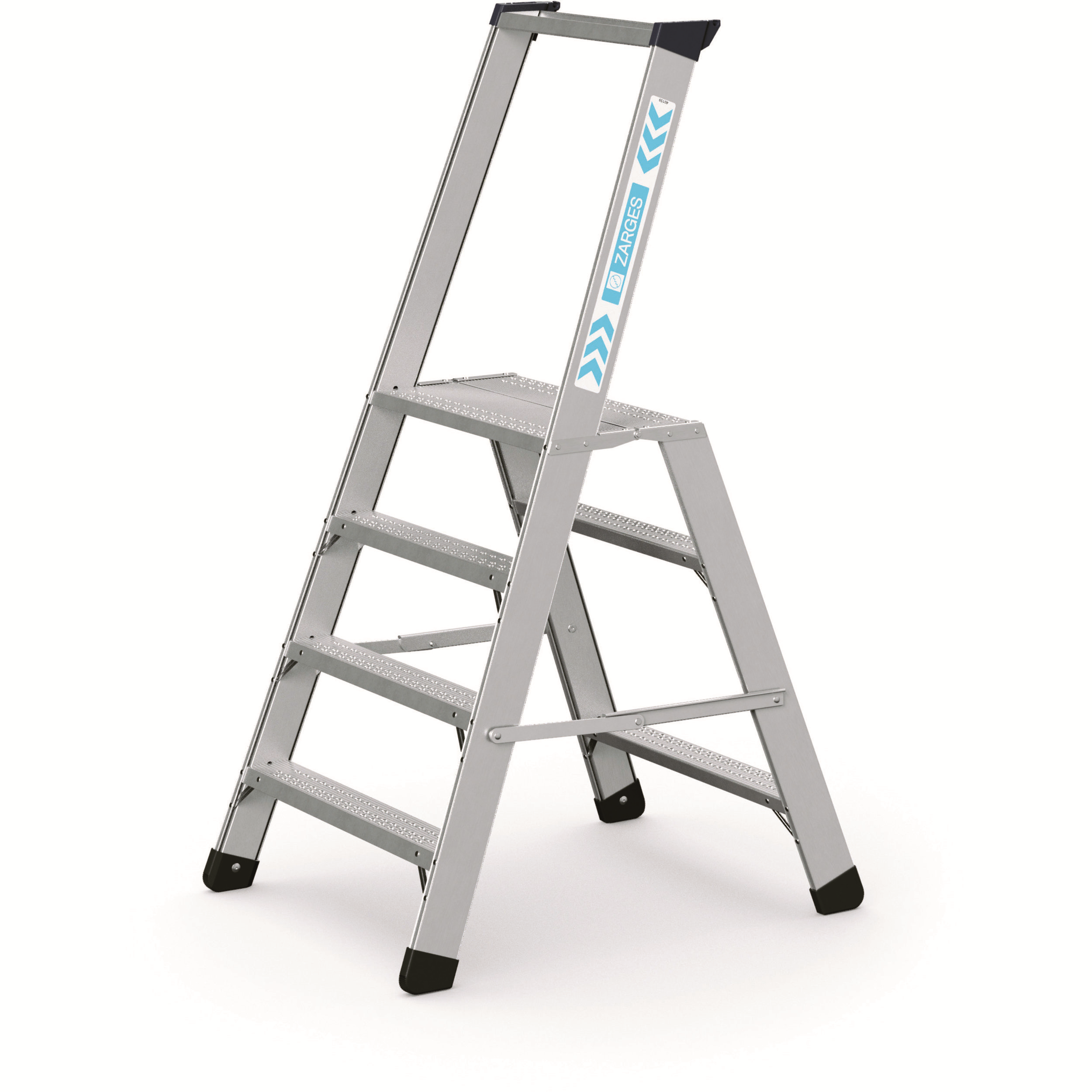 Lätt och bekväm säkerhetsbock för snabb och flexibel användning med stor 600 x 300 mm arbetsplattform och skyddsräcke. Uppstigning med 85 mm djupa steg med kragade hål för maximalt fäste, även vid snö och vatten. Vartannat hål är okragat för att ge god dränering. Integrerad gångjärnsförbindning. Patenterad 7-punkts förbindelse mellan trappsteg och stegsida. Praktisk verktygshylla med gott om plats för handverktyg och småsaker. Godkänd enligt Bra Arbetsmiljöval. I enlighet med SS-EN 131 professionell.