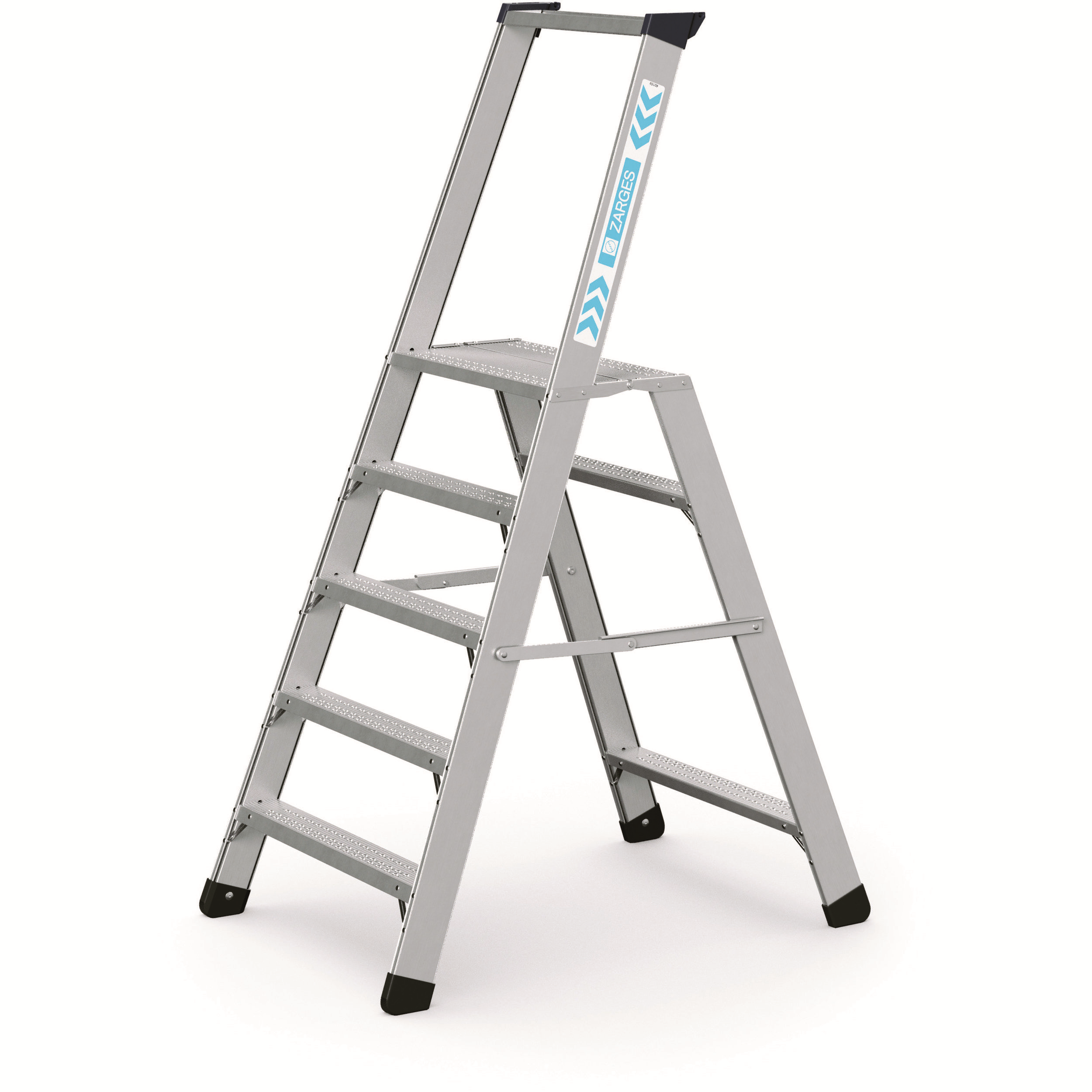 Lätt och bekväm säkerhetsbock för snabb och flexibel användning med stor 600 x 300 mm arbetsplattform och skyddsräcke. Uppstigning med 85 mm djupa steg med kragade hål för maximalt fäste, även vid snö och vatten. Vartannat hål är okragat för att ge god dränering. Integrerad gångjärnsförbindning. Patenterad 7-punkts förbindelse mellan trappsteg och stegsida. Praktisk verktygshylla med gott om plats för handverktyg och småsaker. Godkänd enligt Bra Arbetsmiljöval. I enlighet med SS-EN 131 professionell.