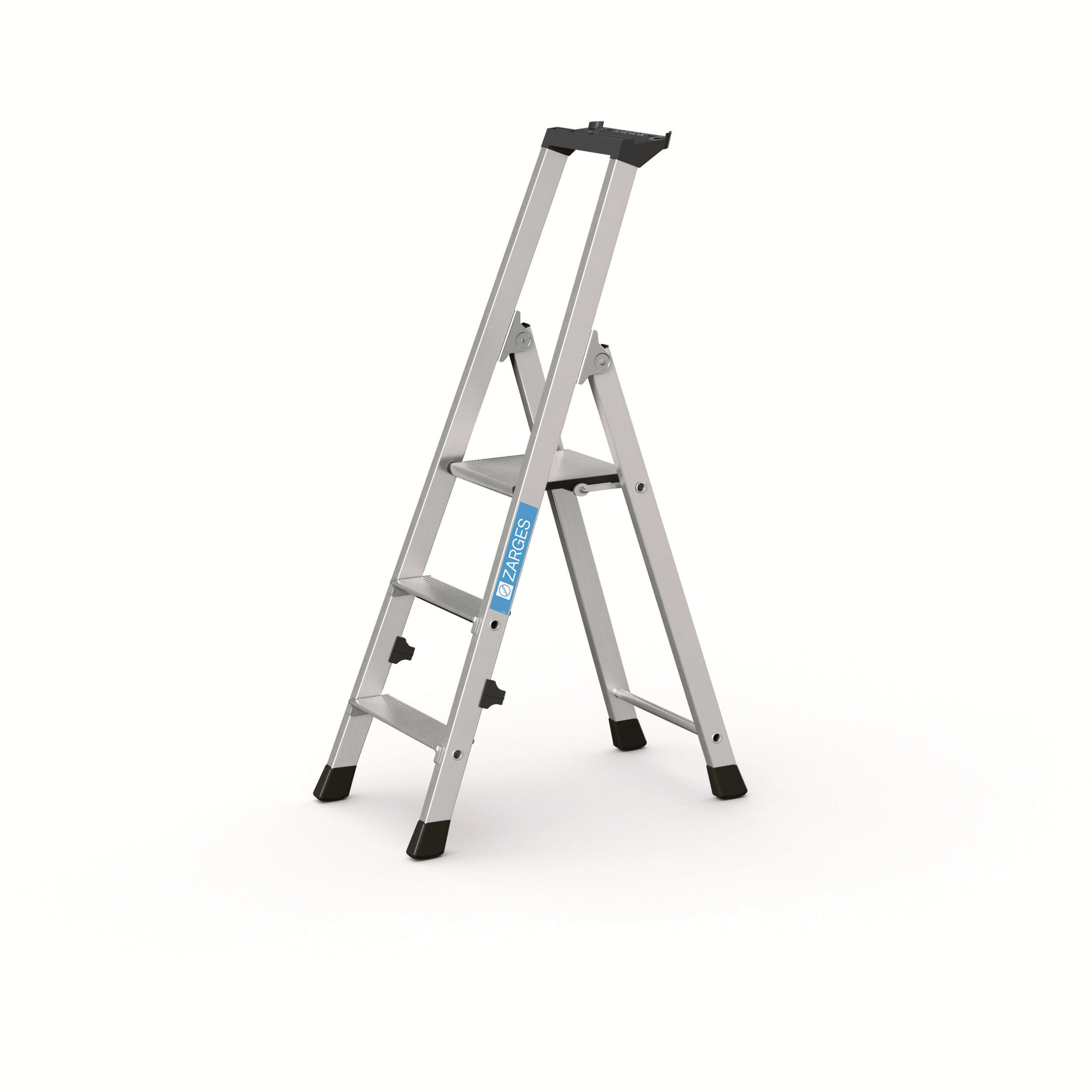 Bekväm trappstege med 80 mm djupa steg och rymlig arbetsplattform med skyddsräcke för säkert arbete. Praktisk verktygshylla med gott om plats för handverktyg och småsaker. Patenterad stegkonstruktion: robust, stabil och hållbar flänsad förbindning mellan trappsteg och stegsidor. Plattform av strängpressad aluminium garanterar optimal stabilitet. Två beslag på plattformen av strängpressad aluminiumprofil låser stegen i utfällt läge. Halksäkra syntetiska glidskydd. I enlighet med SS-EN 131 professionell.