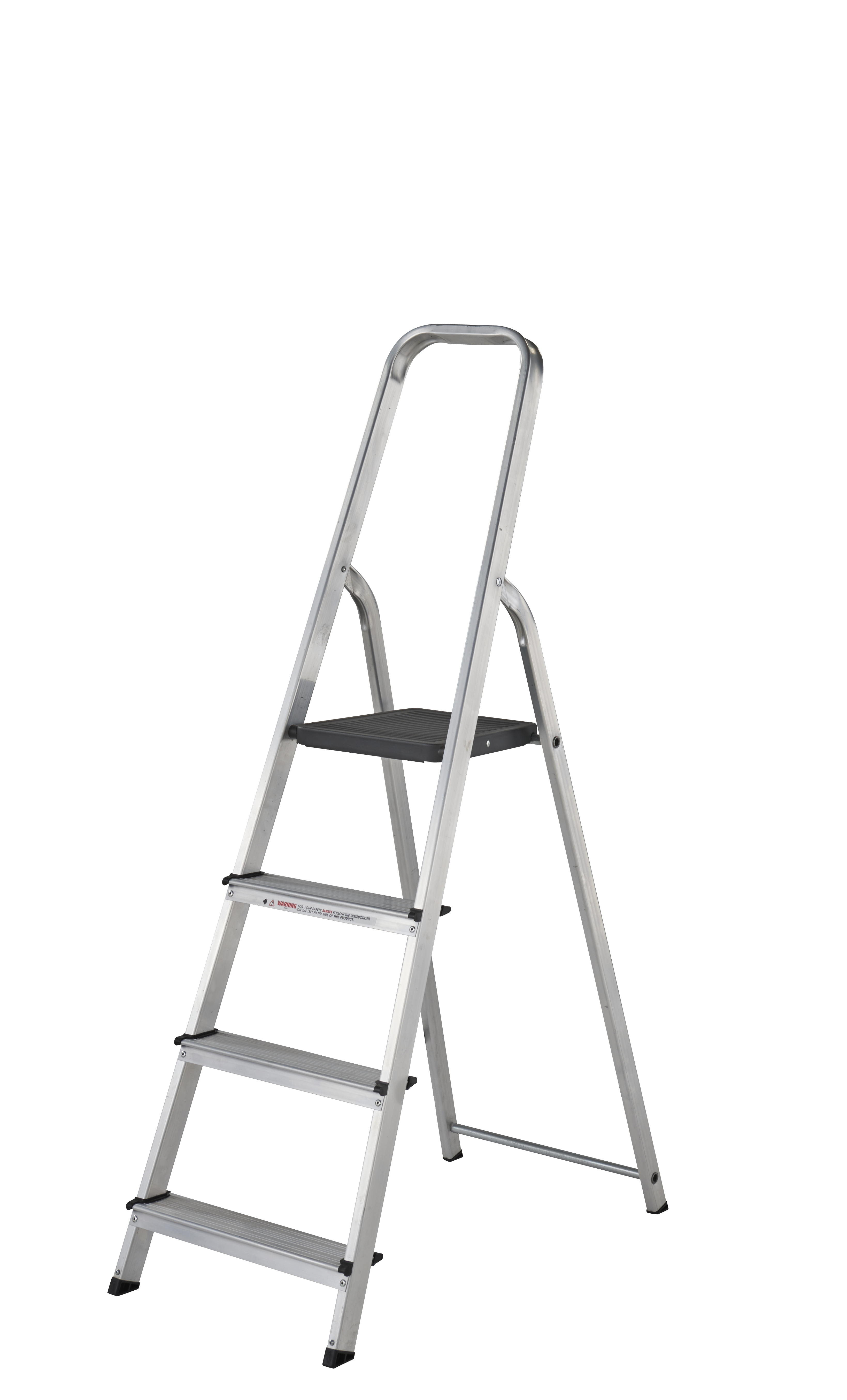 Hushållstrappstegen är i aluminium och har en stor plattform för bekväm ståyta. Plattformen har halksäker räffling för extra stöd. Hållfast perlonband som extra säkring. Stegen är perfekt för arbeten vid hus. I enlighet med den senaste EN131 standarden och lämpar sig bäst för icke-professionellt bruk.