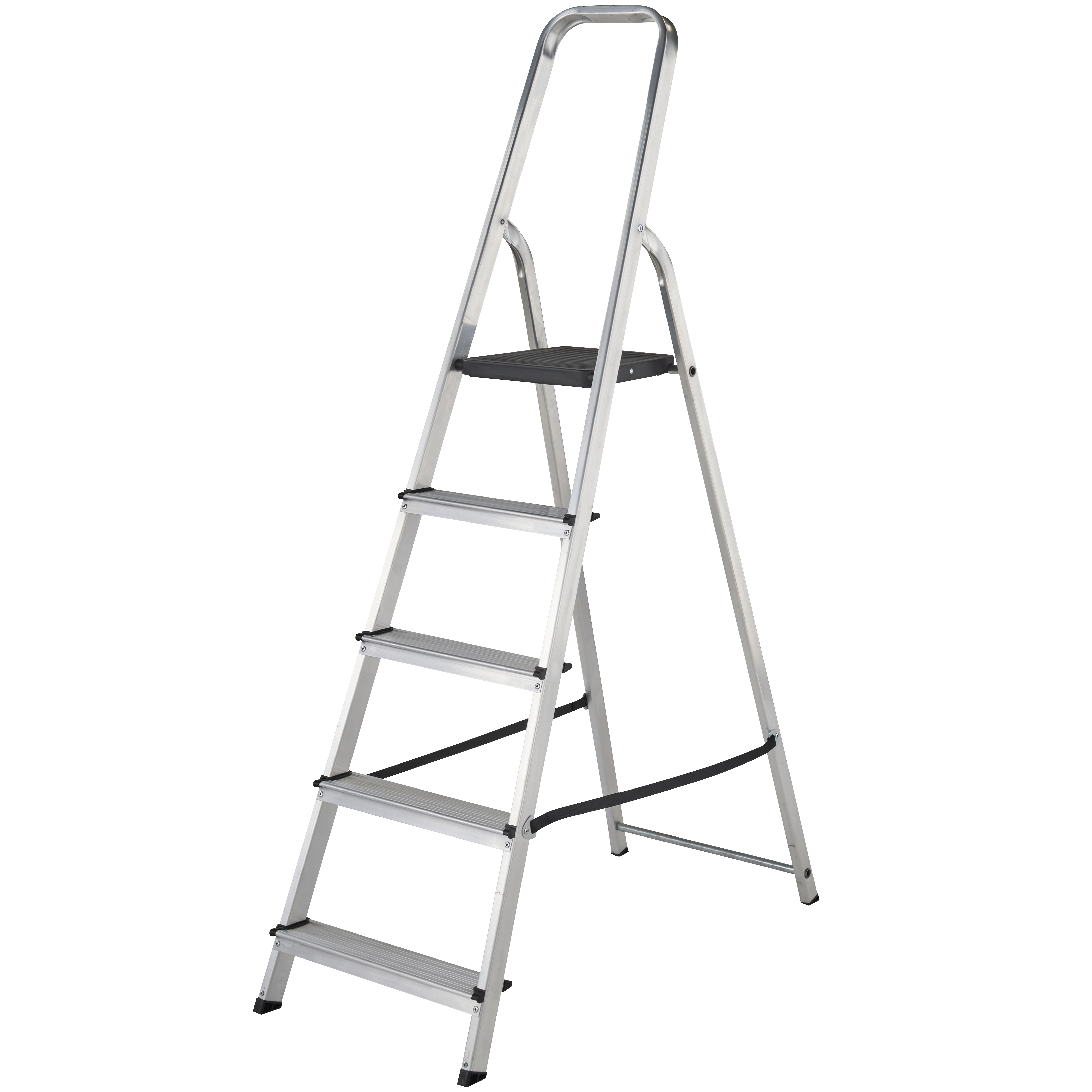 Hushållstrappstegen är i aluminium och har en stor plattform för bekväm ståyta. Plattformen har halksäker räffling för extra stöd. Hållfast perlonband som extra säkring. Stegen är perfekt för arbeten vid hus. I enlighet med den senaste EN131 standarden och lämpar sig bäst för icke-professionellt bruk.