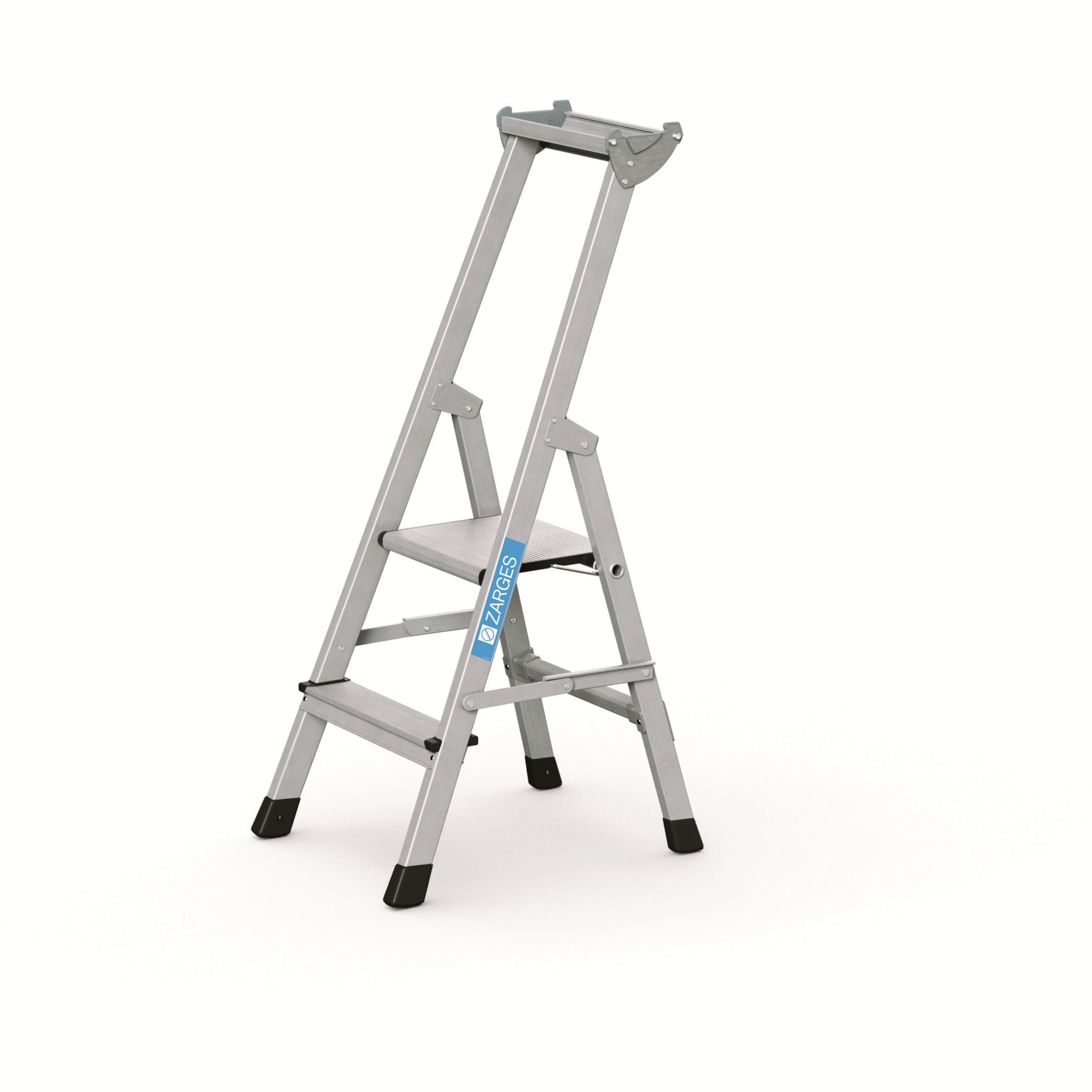 Lätt och bekväm trappstege med eloxerade stegsidor som inte svärtar dina händer. 80mm breda trappsteg och rymlig verktygshylla för material och verktyg. Arbetsplattformen (300 × 250mm) och halksäkra glidskydd gör att du står säkert och bekvämt även vid tidskrävande arbeten. Tredubbel nitad förbindelse mellan trappsteg och stegsidor. Hög stabilitet tack vare dubbelsidigt fast stag. Godkänd enligt Bra Arbetsmiljöval. I enlighet med SS-EN 131 professionell.
