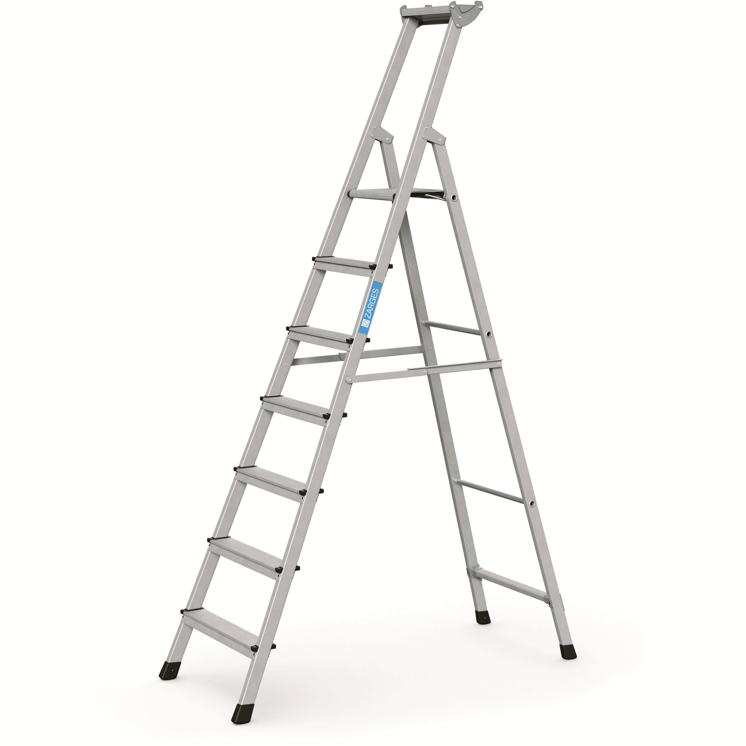 Lätt och bekväm trappstege med eloxerade stegsidor som inte svärtar dina händer. 80mm breda trappsteg och rymlig verktygshylla för material och verktyg. Arbetsplattformen (300 × 250mm) och halksäkra glidskydd gör att du står säkert och bekvämt även vid tidskrävande arbeten. Tredubbel nitad förbindelse mellan trappsteg och stegsidor. Hög stabilitet tack vare dubbelsidigt fast stag. I enlighet med SS-EN 131 professionell.