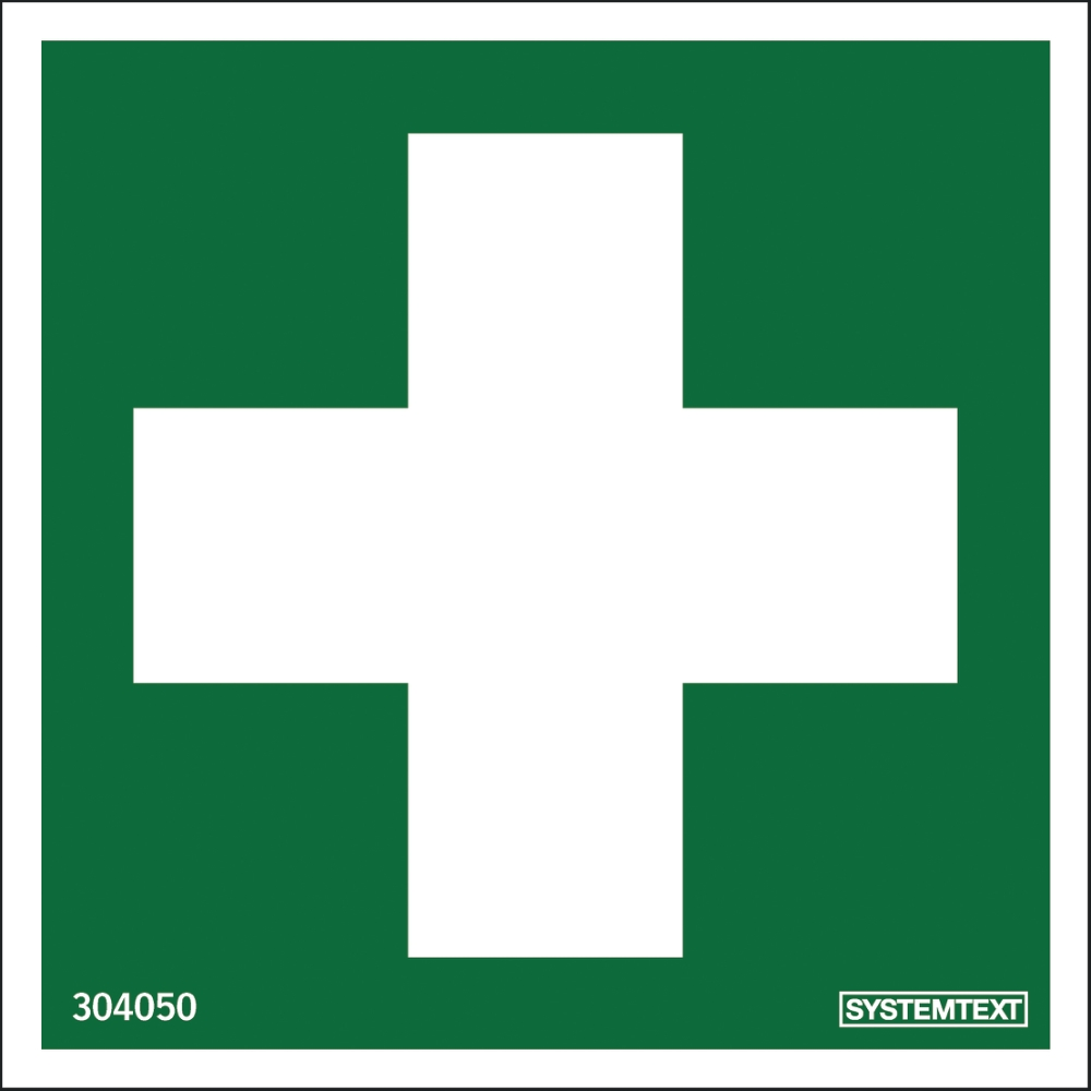 Skylt Första Hjälpen. Dekal, slitstark vinylplast. Yta: Tryck.