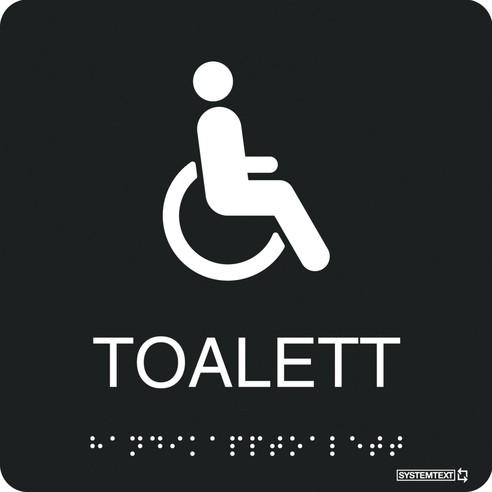 Skylt Toalett respektive WC. Tillämpning: Vägg. Material: Återvunnen hårdplast (98%). Yta: Taktil.