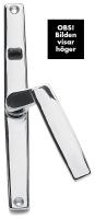 Smart spanjoletthandtag med tryckknappsspärr. Extra lång skylt för att täcka över skruvhål från gamla trasiga handtag. Tapplängd 45 mm. Skyltmått 193x21 mm