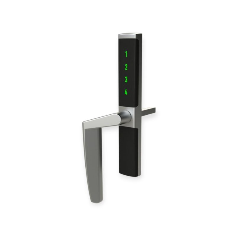 *Elektromekaniskt handtag för montering invändigt på altandörr/fönster.