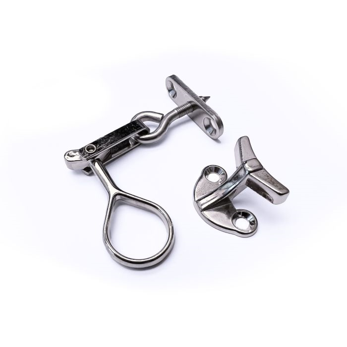 Fönsterlås VM 281 ÖGLA med hake och bricka, förnicklad. Bricka 40x12 mm, skruvhål cc 28 mm.