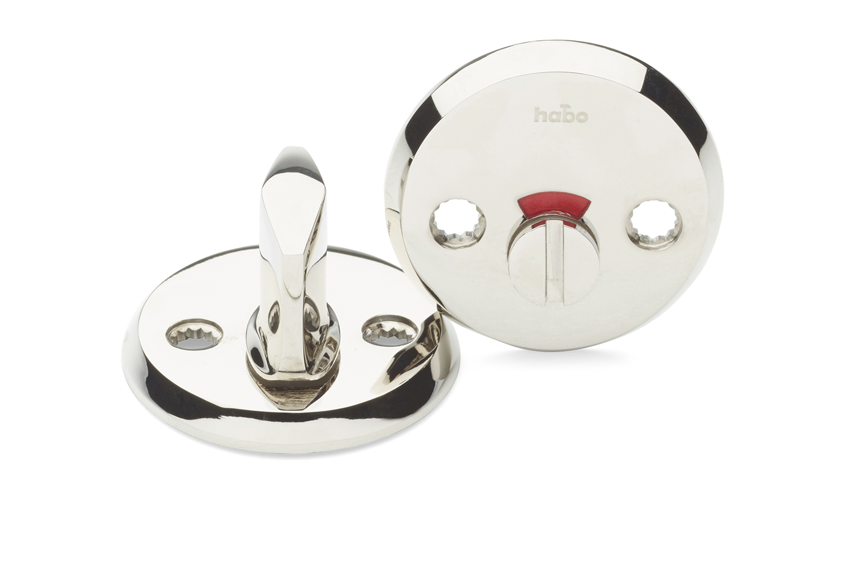 WC-beslag av zink. Levereras med skruv för genomgående fastsättning. Avsett för modullås typ 6565. Passar till dörrtjocklek 38-65 mm. Vid montering på tunnare dörr än 60 mm måste vredpinnen kapas.