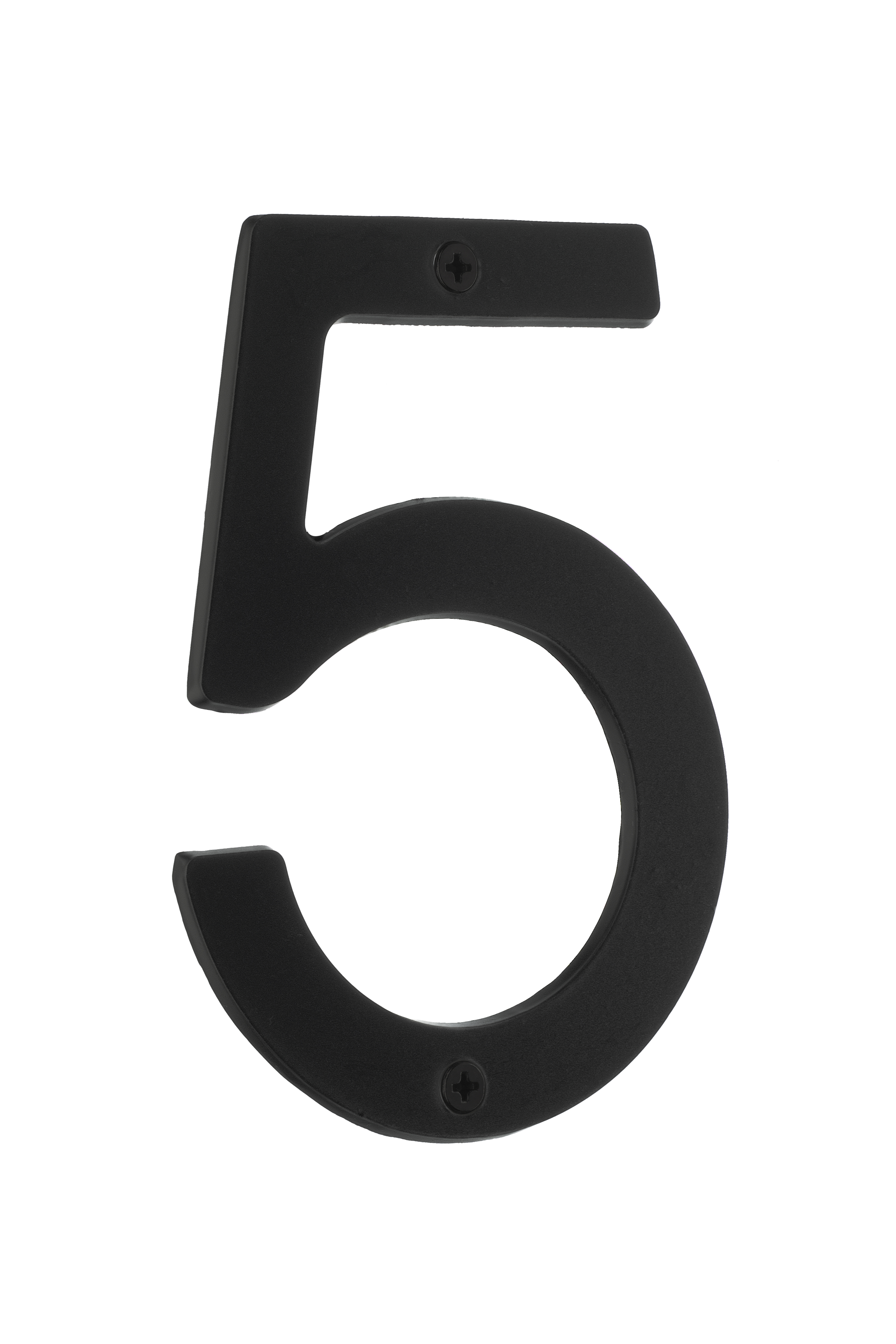 VILLA hussiffra.Svart.Siffra 5.Höjd 120 mm.Komplett med skruvar, distanshylsor och pluggar.