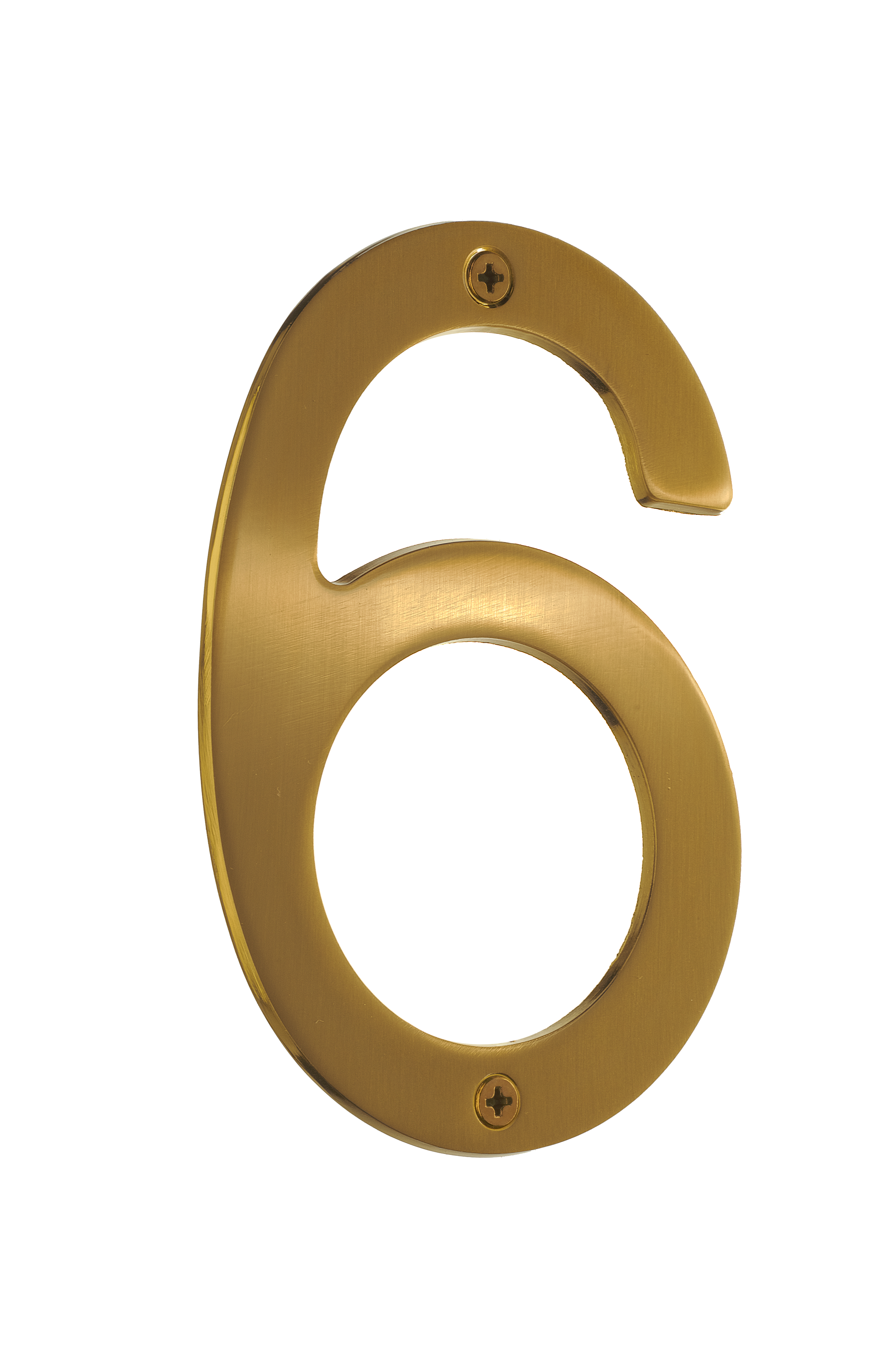 VILLA hussiffra.Borstad mässingsfinish.Siffra 6.Höjd 120 mm.Komplett med skruvar, distanshylsor och pluggar.