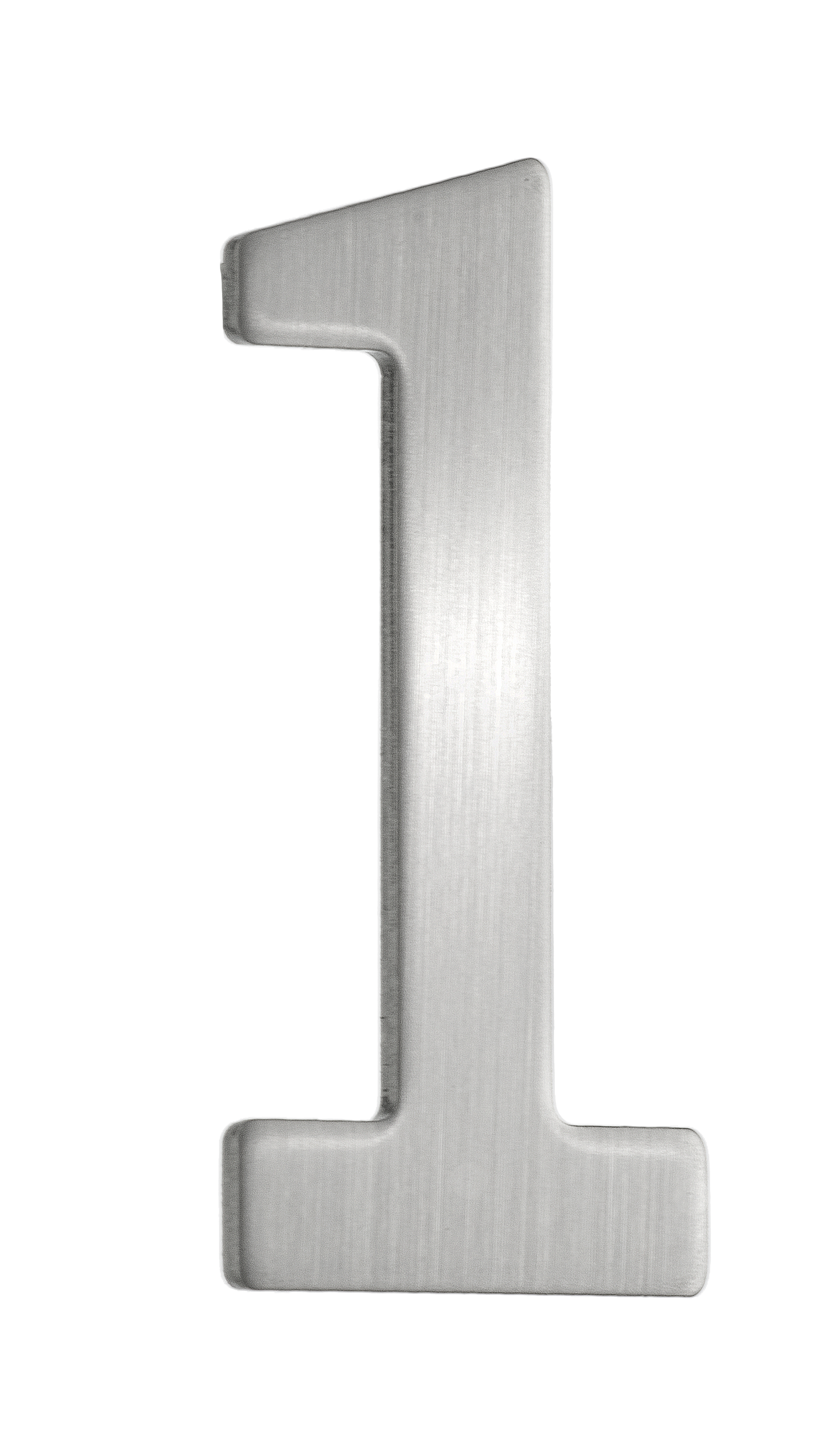 Rostfri brevlådesiffra.Siffra 1.Självhäftande.Höjd 50 mm.