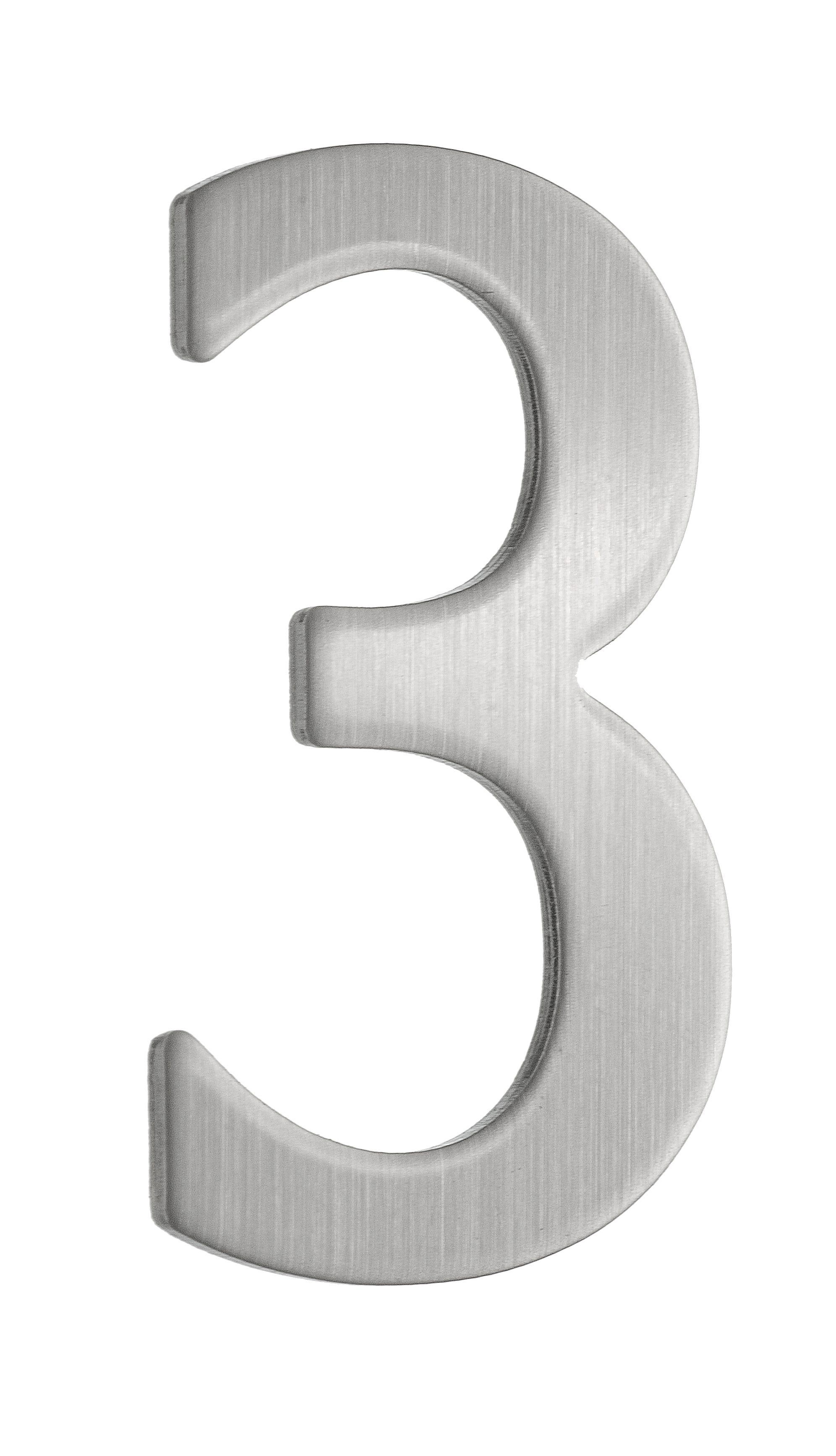 Rostfri brevlådesiffra.Siffra 3.Självhäftande.Höjd 50 mm.