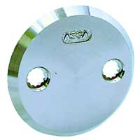 Behör för att täcka dörrens tryckesurtag. Levereras med alternativa, dekorativa ytbehandlingar. Monteras med genomgående skruvar Ø 5 mm och nipplar. Ø 52 mm. Täcker dörrens tryckesurtag. Används där trycke inte ska monteras.
