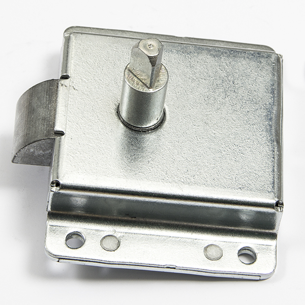 Fjäderbelastat boxlås av stål inklusive slutbleck. Kolvdiameter 10 mm, slaglängd 17 mm.