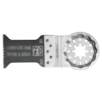 Bimetall med skränkt tandning för alla trä-, gipsskive- och plastmaterial. Suverän livslängd, hög snittkvalitet och bra avverkning. Mycket rubost, okänslig även mot spik i trä (upp till ca Ø 4 mm), tegel etc. Mellanbred, insvängd form för optimal avverkningshastighet och bra spåntransport. Fäste: Starlock.