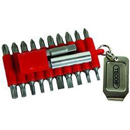 7 st Torx: 1 × TX10, 1 × TX15, 1 × TX20, 3 × TX25, 1 × TX30 5 st PH: 1 × PH1, 1 × PH2, 1 × PH3, 1 × PH2 reduceret 3 st PZ: 1 × PZ1, 1 × PZ2, 1 × PZ3 1 st Robertson S1 1 st Robertson S1: 1 x 75 mm lång 1 st Bitsholder 1 × 1/4” x 60 mm med magnet.