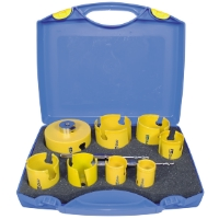 Hålsågssats för el, vvs och ventilation. Hålsåg HM med hårdmetallskär "Multi Purpose". En perfekt hålsåg för upptagning av hål i de flesta material. Skär mer än 10 gr snabbare än traditionella hålsågar och har oöverträffad livslängd. Skär i: trä, spånplattor, MDF-plattor, laminat, plast, gips, lättbetong, leca, glasfiber samt kakelplattor och stenmaterial upp till en hårdhet på 6.