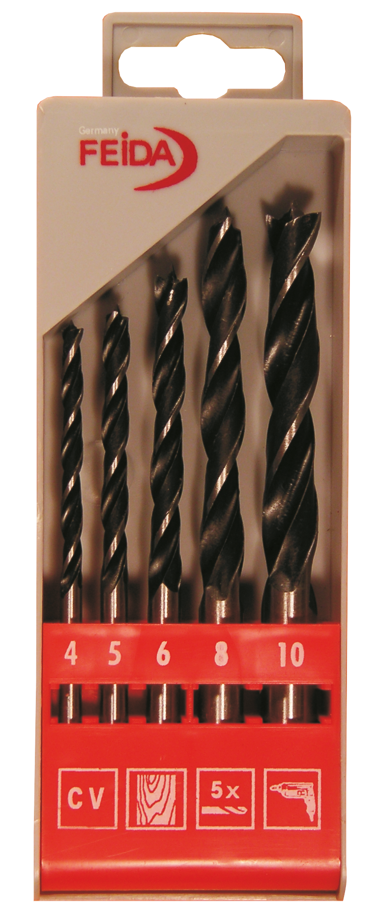 TRÄSPIRALBORRSATS 4-10MM 5DEL FEIDA 4/5/6/8/10