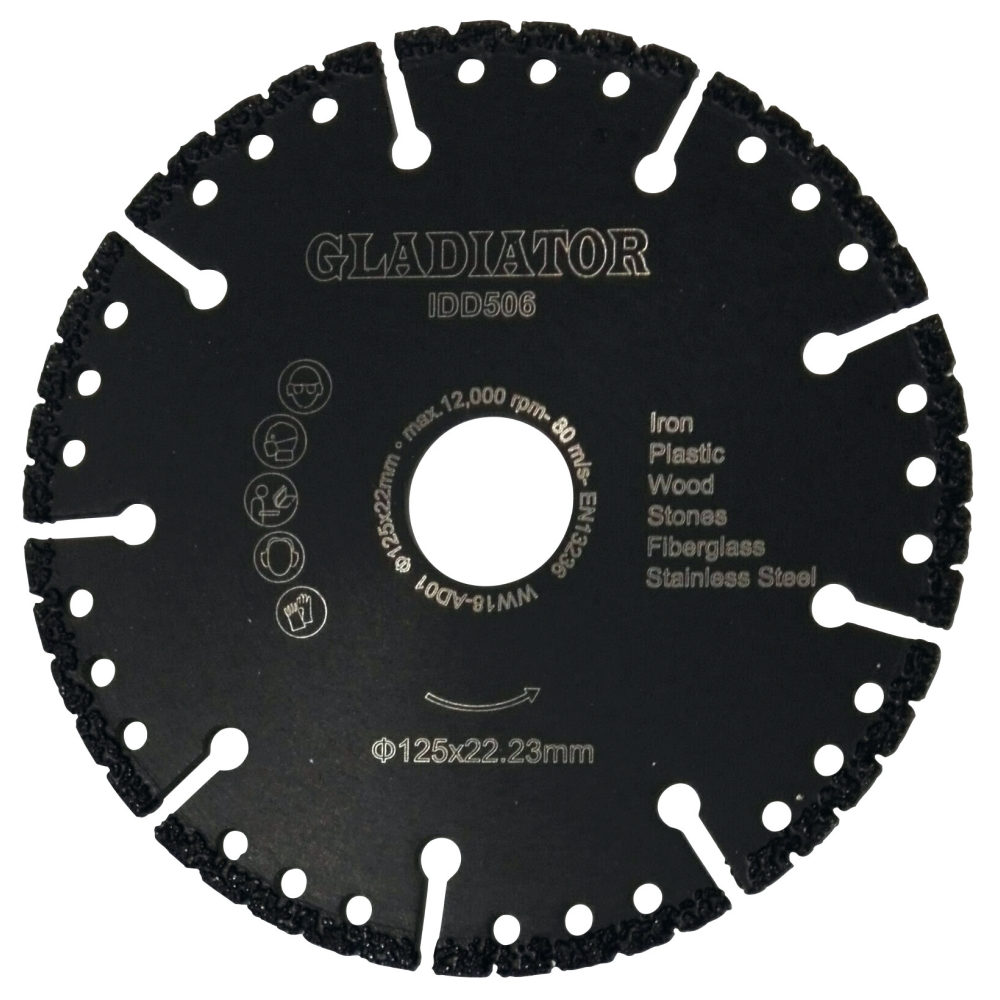 Industrial diamantkapklinga Gladiator är en allroundklinga med hel bana som löser alla dina kapbehov. Avsedd att användas för alla typer av byggnadmaterial som betong, armerad betong, stål, metaller, armering, minerit, natur och konststen, tegel, trädgårdsplattor m.m. Den speciellt utformade banan ger en relativt snabb kapning i de flesta material med rena fina snitt både vid torr och våtkapning. 22 mm centrumhål. SB-packad.