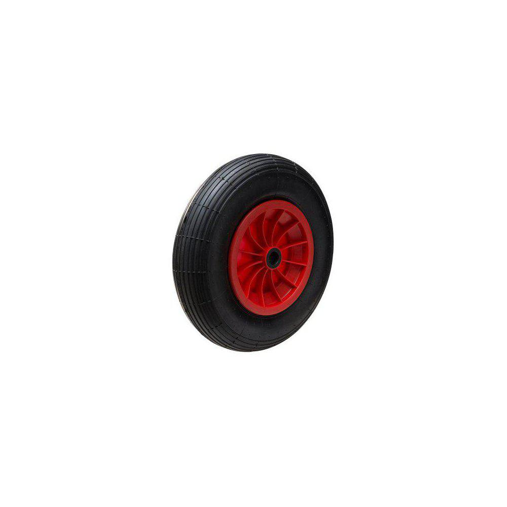 Luftgummihjul med butylslang. Centrerade nav. Breda och mjuka hjul som lätt rullar över hinder som trösklar, ojämn mark och mjuka underlag.