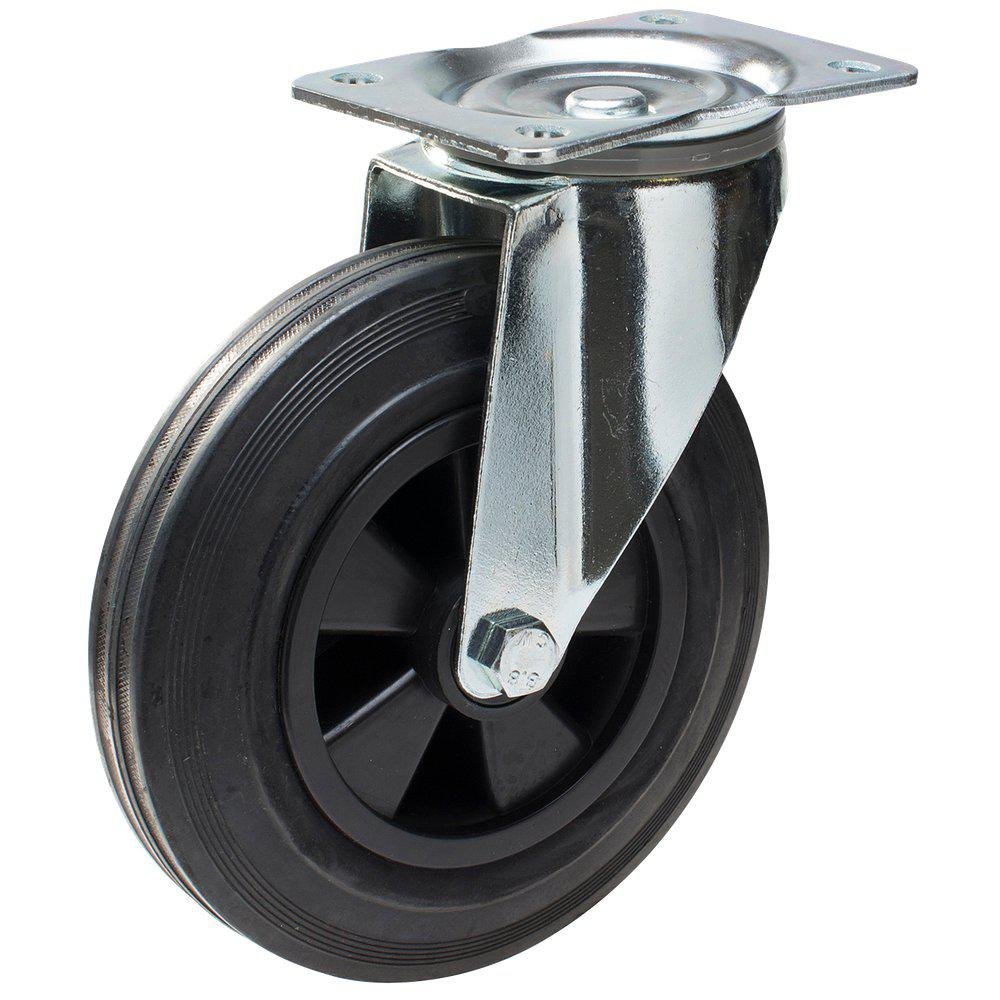 Svart gummihjul med polypropylenenav.