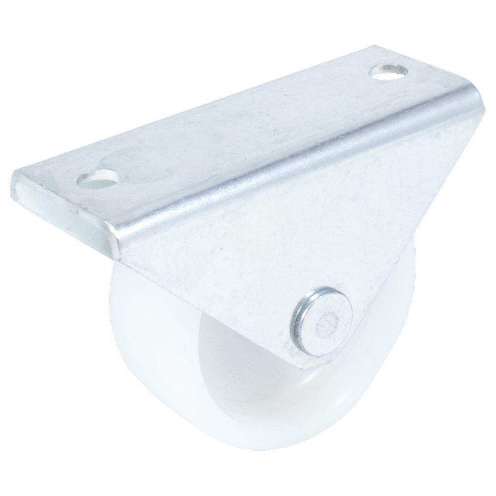 Ottomanhjul med fästplatta för utdragbara möbler, såsom utdragbara sängar och hurtsar. Pressad, förzinkad fast plåtbygel, med PP-hjul.