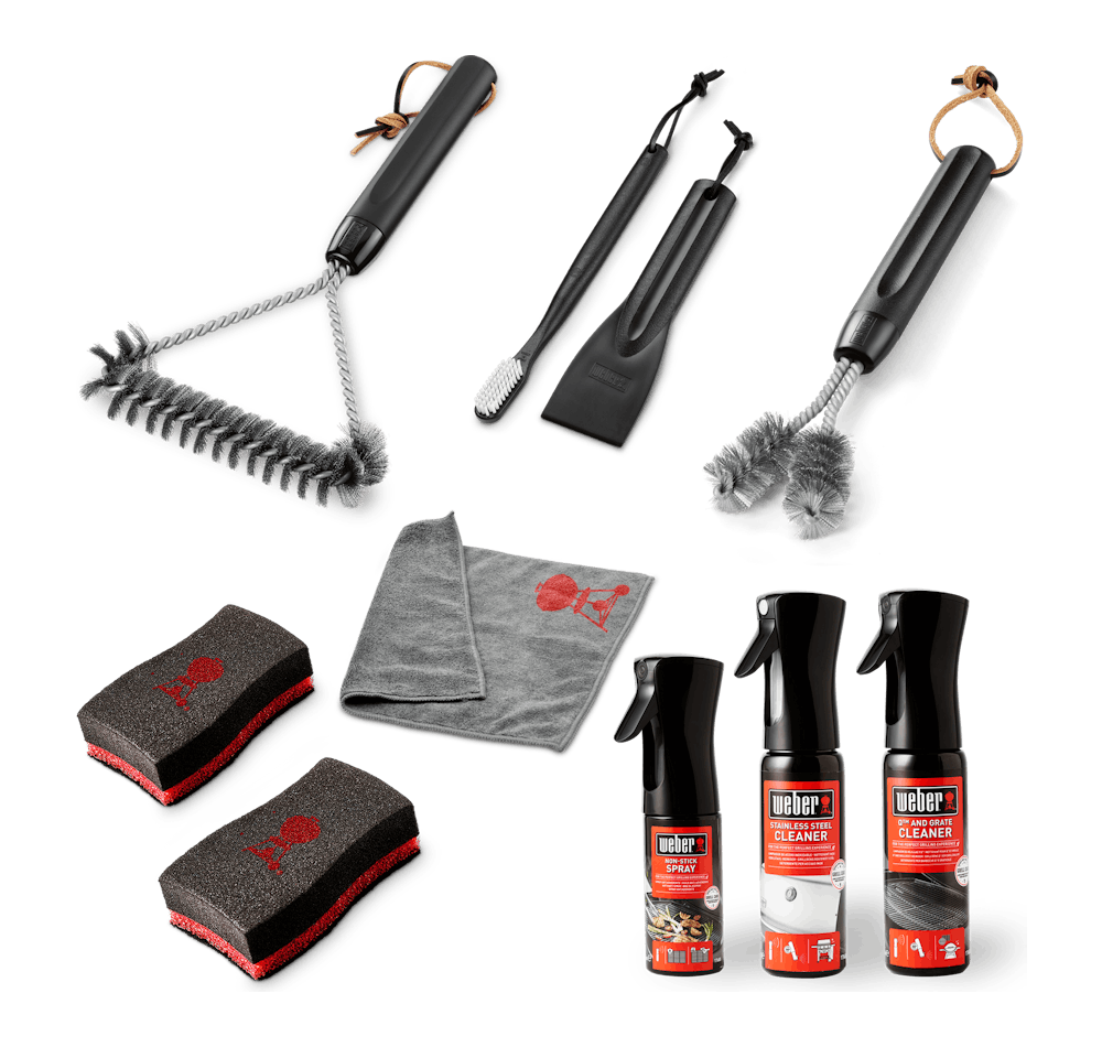 Få din grill att både se ut och fungera som ny – säsong efter säsong. Med rengöringskittet som är särskilt utformat för gasolgrillar i rostfritt stål från Weber® har du allt du behöver för att ge din grill en djuprengöring och förbereda den för nästa matlagningstillfälle. Det kommer att hålla din grill i toppform – och garanterar säkra och ultimata grillupplevelser med hög prestanda. Innehåller borstar, rengöringsmedel, svamp, trasa och non-stick-spray.